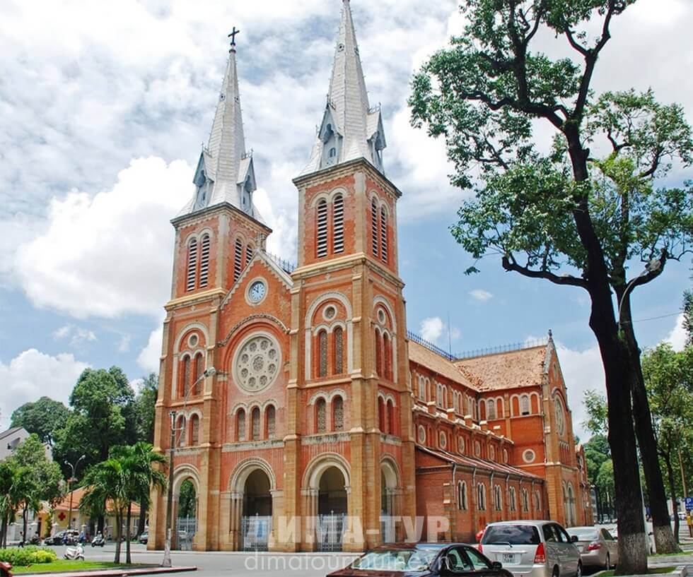 Прогуливаясь по историческому центру Хошимина, вы точно не пропустите этот собор, построенный во французском колониальном, неороманском стиле. Материалы для строительство собора были привезены из французского города Марселя. А механизм часов, установленных на фасаде здания, был изготовлен в Швейцарии. Перед собором расположен сквер, в котором установлена мраморная статуя Богоматери.